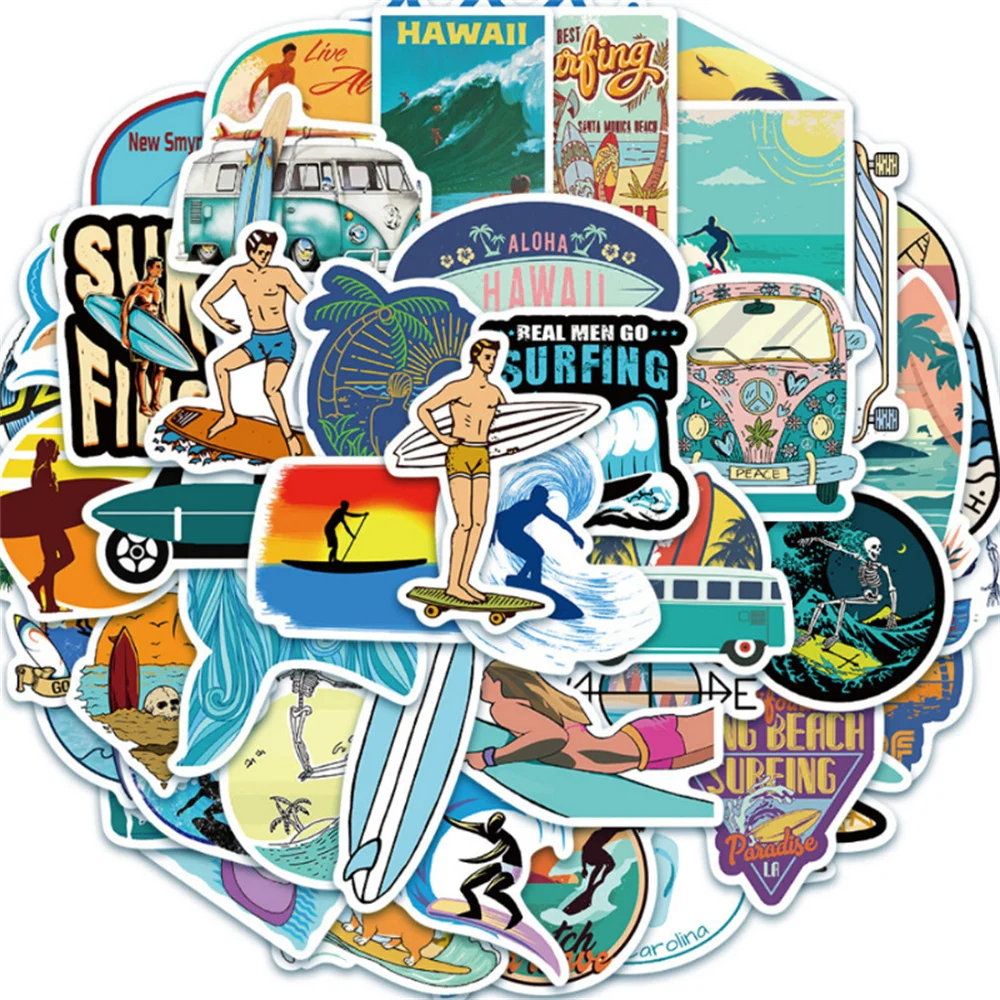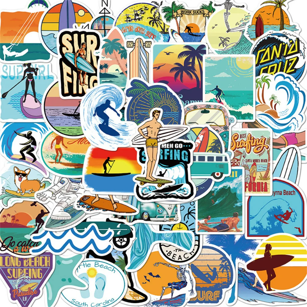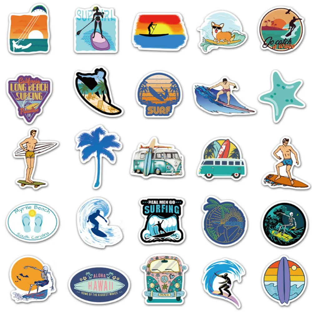 10/30/50PCS Cartoon Summer Beach Surf Graffiti Creative Sticker Desk GuitarComputer Refrigerator CarWaterproof Sticker Wholesale