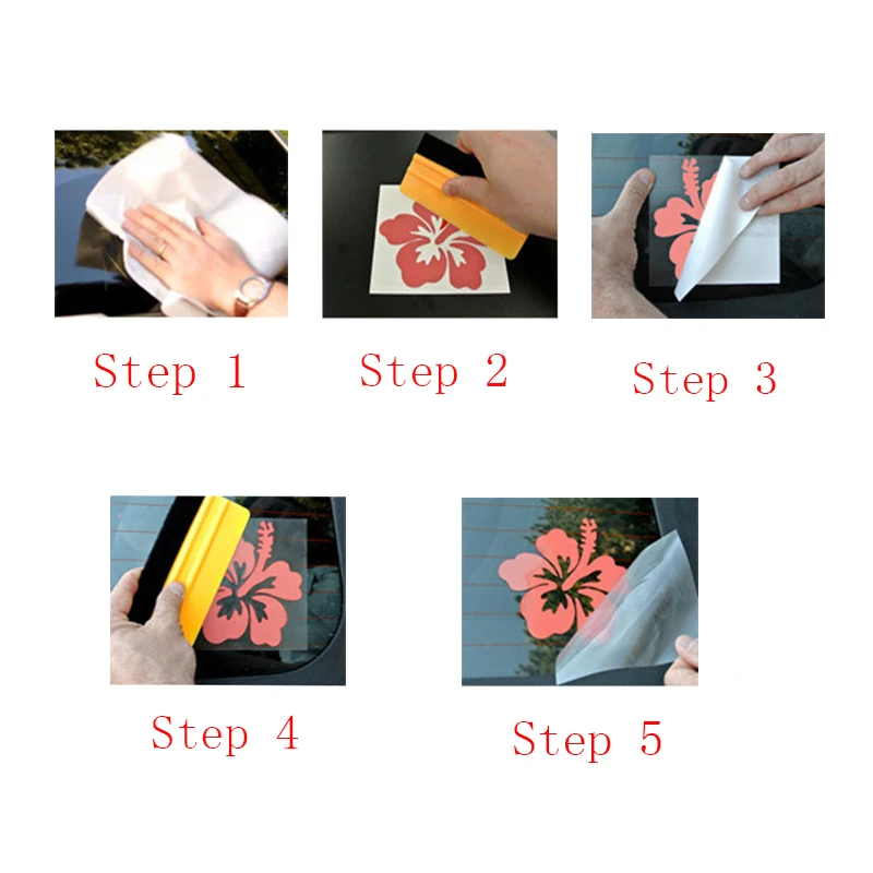 Prepare the sticker for application by firmly rubbing a aqueegee or credit card across the clear transfer tape.This removes any aire bubbies that may have formed and makes the sticker cling to the transfer tapes