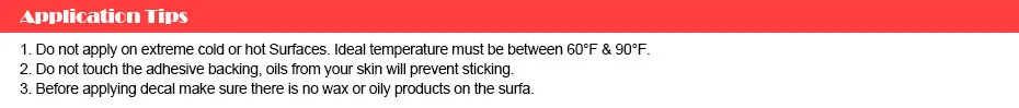 Slowly lower the sticker onto the surface and rub it in place firmly with a squeegee or credit card,Start inthe middle and work your way out.